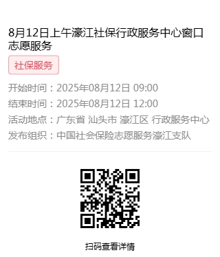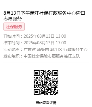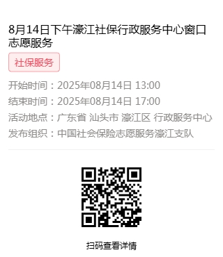 2025年8月11日至2025年8月15日市社保局濠江分局驻行政服务中心窗口志愿服务活动,需要每一个可爱的你参与!