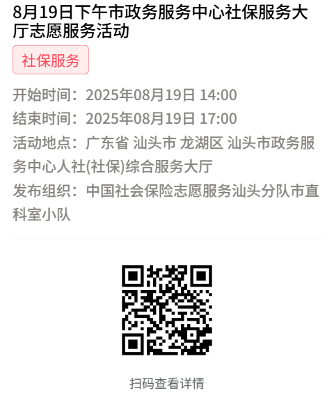 第一步:加入“中国社会保险志愿服务汕头分队”或下属各支队