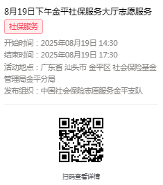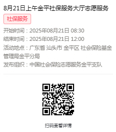 2025年8月18日至8月22日市社保局金平分局大厅志愿服务活动,需要每一个可爱的你参与!