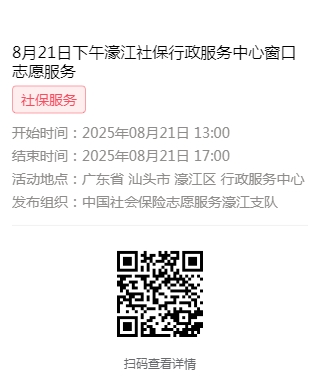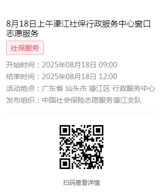 2025年8月18日至2025年8月22日市社保局濠江分局驻行政服务中心窗口志愿服务活动,需要每一个可爱的你参与!