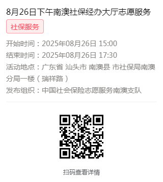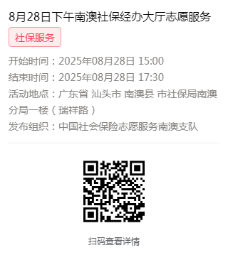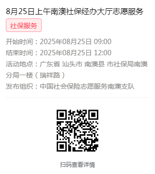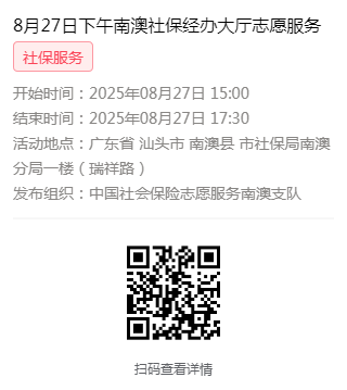 2025年8月25日至8月29日市社保局南澳分局大厅志愿服务活动,需要每一个可爱的你参与!