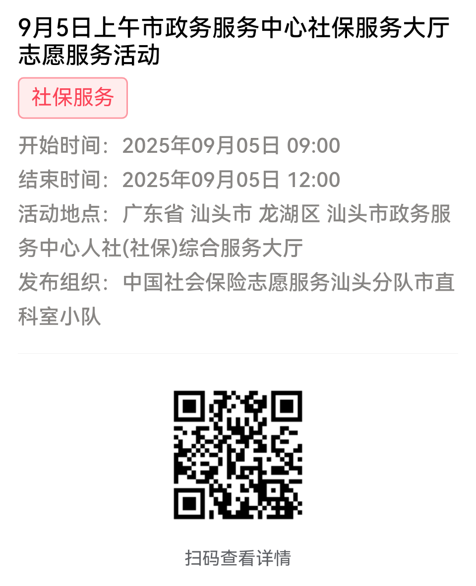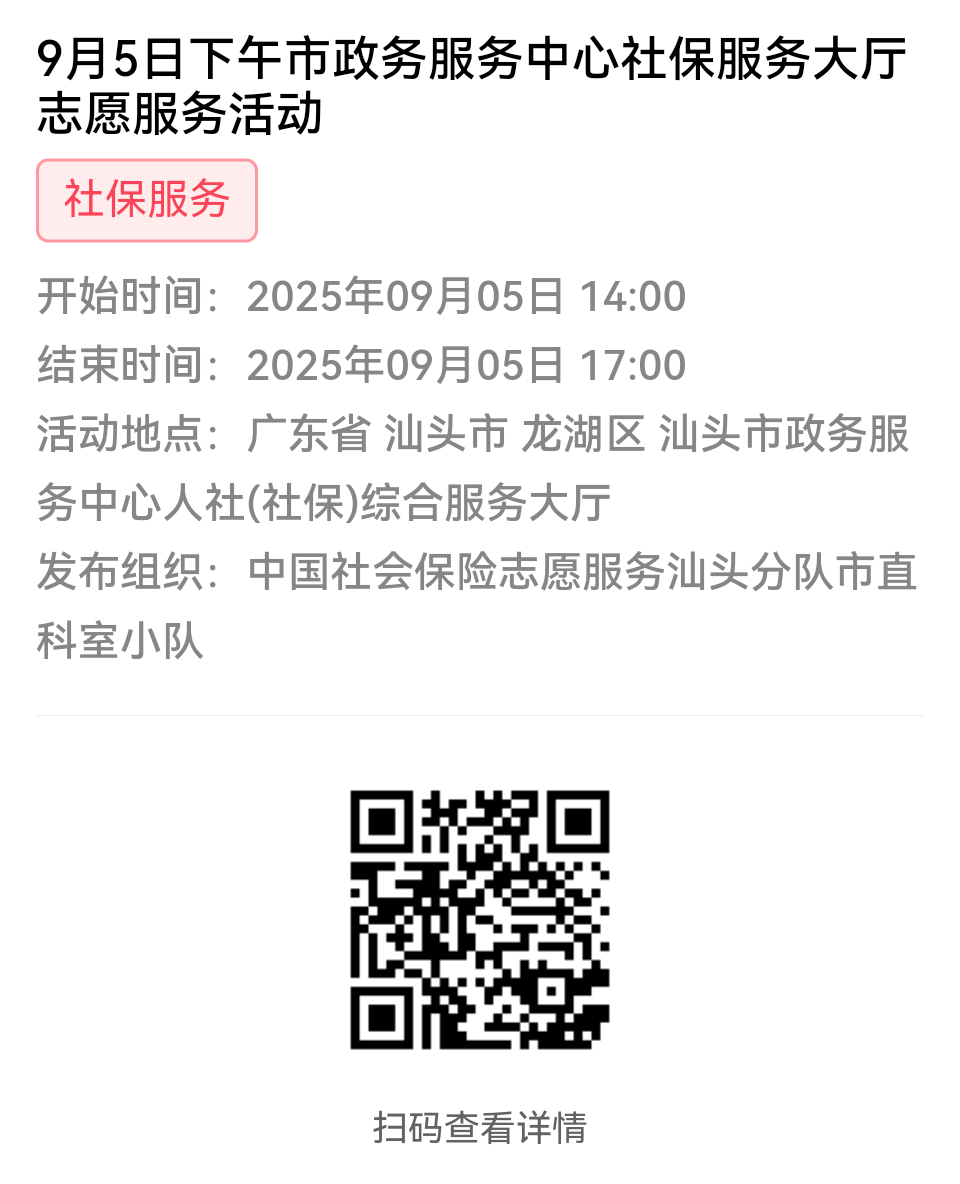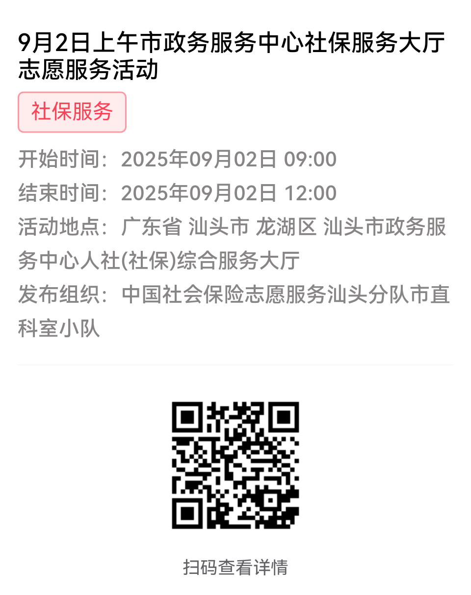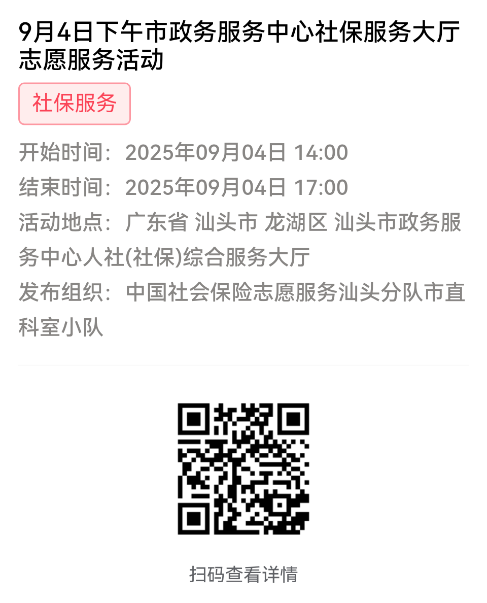 第一步:加入“中国社会保险志愿服务汕头分队”或下属各支队
