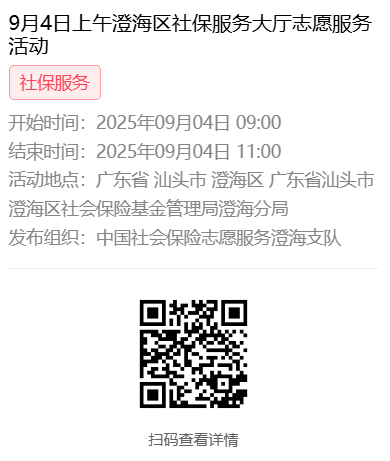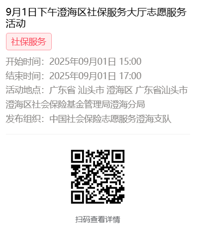 2025年9月1日至9月5日市社保局澄海分局大厅志愿服务活动,需要每一个可爱的你参与!