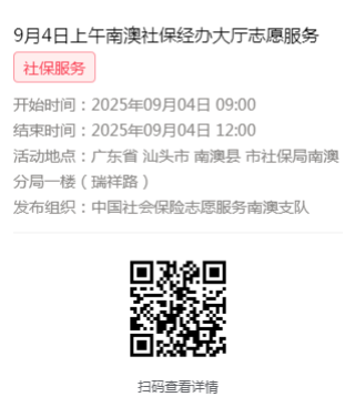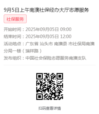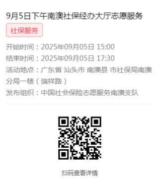 2025年9月1日至9月5日市社保局南澳分局大厅志愿服务活动,需要每一个可爱的你参与!