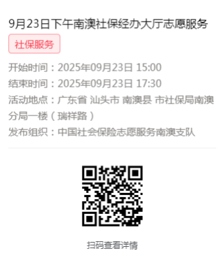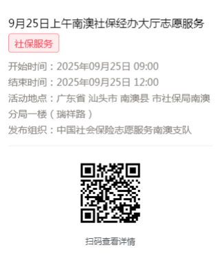 2025年9月22日至9月26日市社保局南澳分局大厅志愿服务活动,需要每一个可爱的你参与!