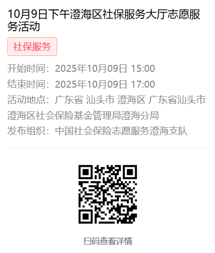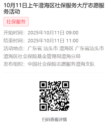 2025年10月9日至10月11日市社保局澄海分局大厅志愿服务活动,需要每一个可爱的你参与!