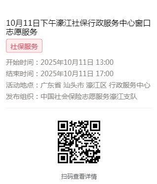 2025年10月9日至2025年10月11日市社保局濠江分局驻行政服务中心窗口志愿服务活动,需要每一个可爱的你参与!