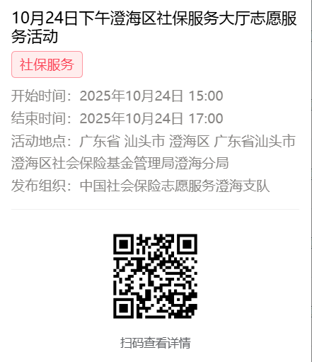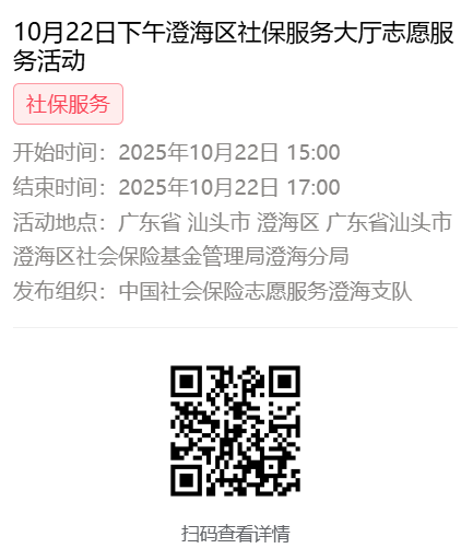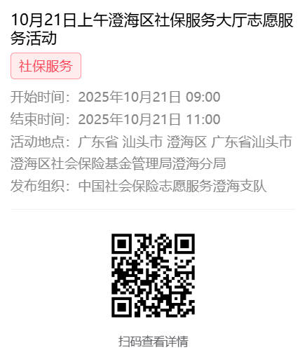2025年10月20日至10月24日市社保局澄海分局大厅志愿服务活动,需要每一个可爱的你参与!