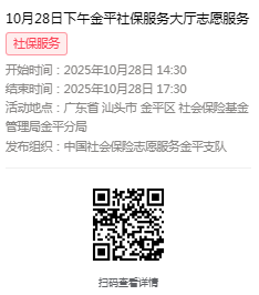 2025年10月27日至10月31日市社保局金平分局大厅志愿服务活动,需要每一个可爱的你参与!