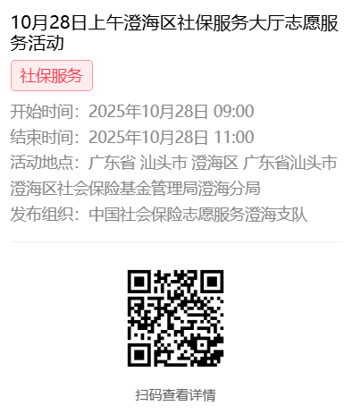 2025年10月27日至10月31日市社保局澄海分局大厅志愿服务活动,需要每一个可爱的你参与!
