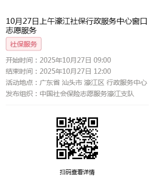 2025年10月27日至2025年10月31日市社保局濠江分局驻行政服务中心窗口志愿服务活动,需要每一个可爱的你参与!