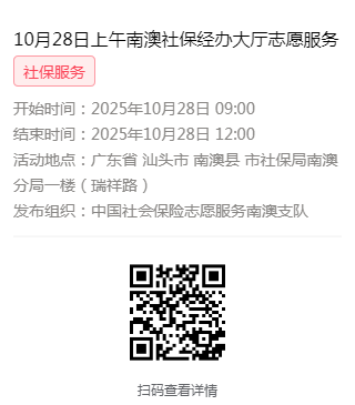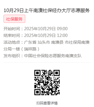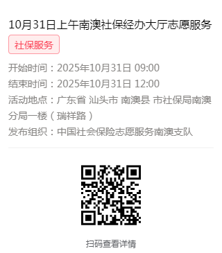 2025年10月27日至10月31日市社保局南澳分局大厅志愿服务活动,需要每一个可爱的你参与!