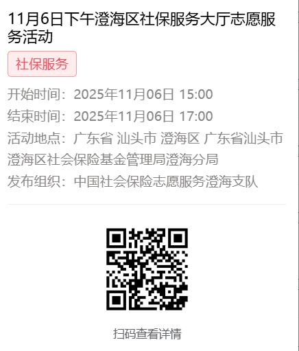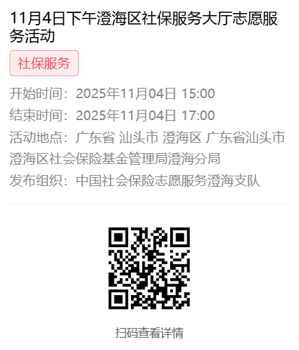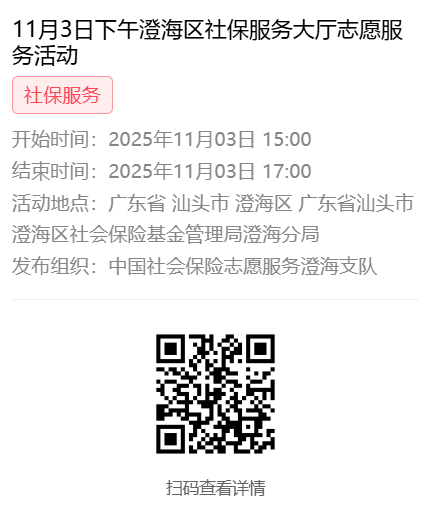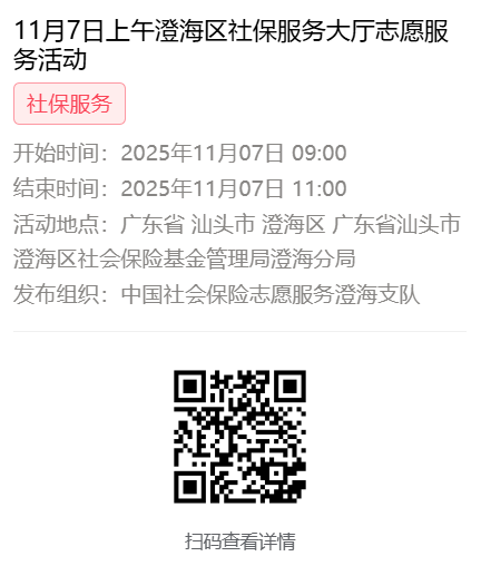 2025年11月3日至11月7日市社保局澄海分局大厅志愿服务活动报名链接