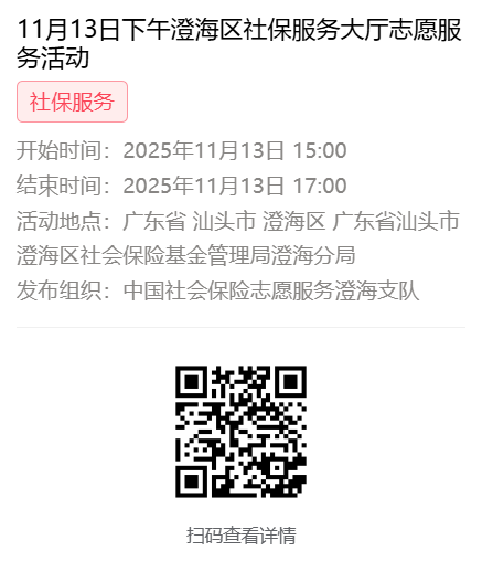 2025年11月10日至11月14日市社保局澄海分局大厅志愿服务活动,需要每一个可爱的你参与!