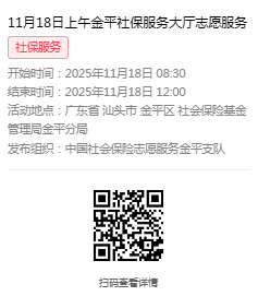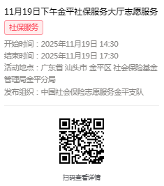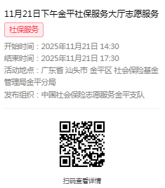 2025年11月17日至11月21日市社保局金平分局大厅志愿服务活动报名链接