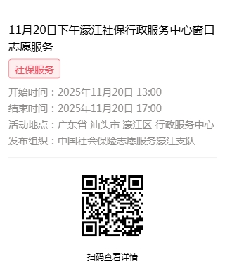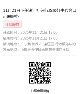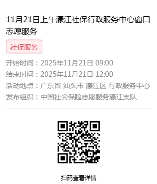 2025年11月17日至2025年11月21日市社保局濠江分局驻行政服务中心窗口志愿服务活动,需要每一个可爱的你参与!