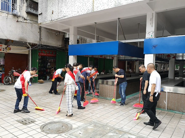 分局党员干部与社区居委干部就最近开展的党建、扶贫、创文工作进行了沟通交流,党支部书记李铮以“加强社区基础建设”为主题,面对面为社区党员们上了一次党课,表明了努力实现结对共建任务落实到位、共同谋划发展路子的决心。随后,分局党员干部分批到9户贫困户进行走访慰问,了解他们的生活状况、目前存在的困难等等,为每户贫困户送去慰问金。分局志愿者们还与社区志愿者们到社区周边片区开展卫生清洁活动,清扫市场积水,清除卫生死角,为创文提质升级工作奉献出了自己的一份努力。
