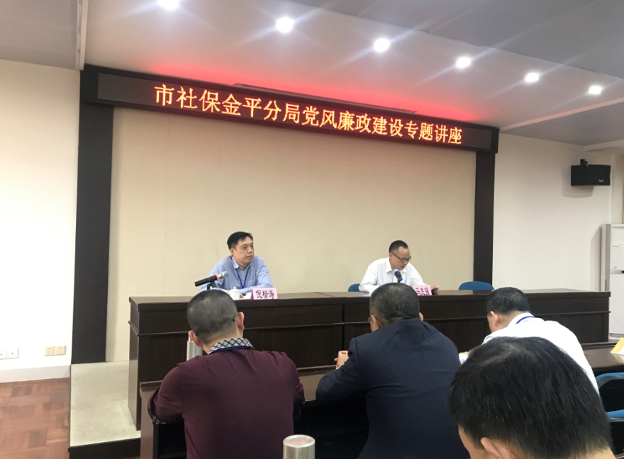 近日,汕头市社保金平分局举办党风廉政建设专题讲座,邀请金平区纪委常委马克强授课。金平分局全体工作人员、老干党支部委员参加了此次讲座。