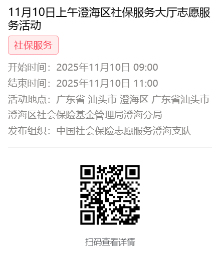 2025年11月10日至11月14日市社保局澄海分局大厅志愿服务活动,需要每一个可爱的你参与!