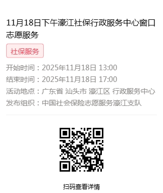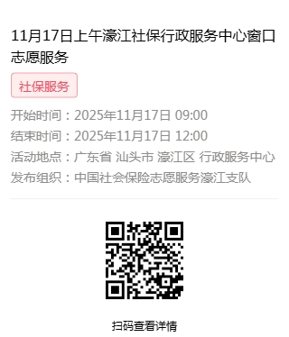 2025年11月17日至11月21日市社保局濠江分局驻行政服务中心窗口志愿服务活动报名链接