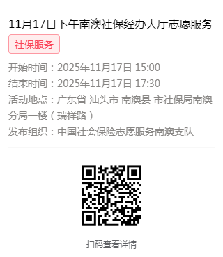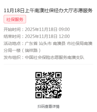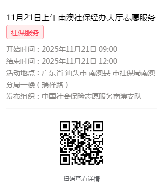 2025年11月17日至11月21日市社保局南澳分局大厅志愿服务活动,需要每一个可爱的你参与!