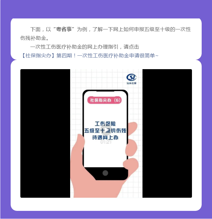 【社保指尖办】第六期!继上一期,看看工伤保险五级至十级的伤残待遇网上该如何办理?
