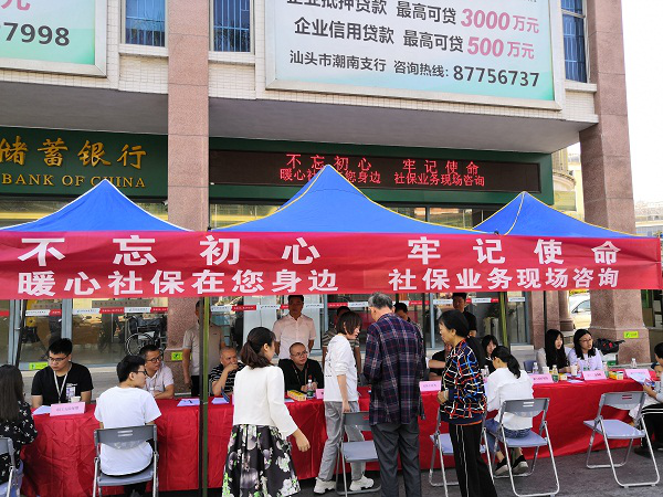 为进一步增进市民群众对社保政策的了解,切实解决群众关心的社保热点问题,同时加强社保业务政策宣传,汕头市社保局及各分局于2019年11月6日在全市范围内统一举行主题为“不忘初心、牢记使命” 暖心社保在您身边 社保业务现场咨询活动。