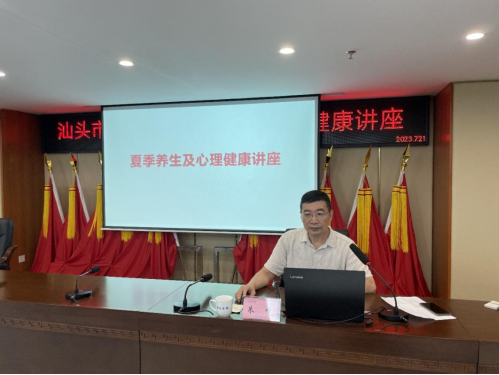 朱峰医生从夏季养生切入,以通俗易懂的语言为干部职工们讲解夏季养生知识,从养心、预防中暑、慎吃冷饮、选择适宜的运动等角度指导大家找到适合自己、切实有效的养生方式。朱医生围绕大笑疗法、背诵放下的名言、怀揣感恩之心、保证睡眠质量、享受慢生活、与幽默作伴等方面,现场分享了心理健康基本知识及心理疏导的方法和技巧,让干部职工在轻松愉悦的氛围中享受了一次“心理按摩”。