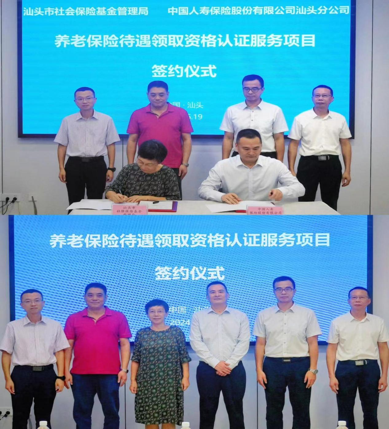 7月3日上午,汕头市社保局与中国人寿保险股份有限公司汕头分公司隆重举行“养老保险待遇领取资格认证服务项目启动暨业务培训会”。项目旨在委托国寿政保服务队伍协助开展基础信息补充健全、待遇资格认证等服务,通过上门服务的方式,为老年人等特殊群体提供更加便捷、高效、安全的养老资格认证服务,切实解决参保人因年老失能、行动不便等原因,不能通过就近就地认证、线上认证等问题。