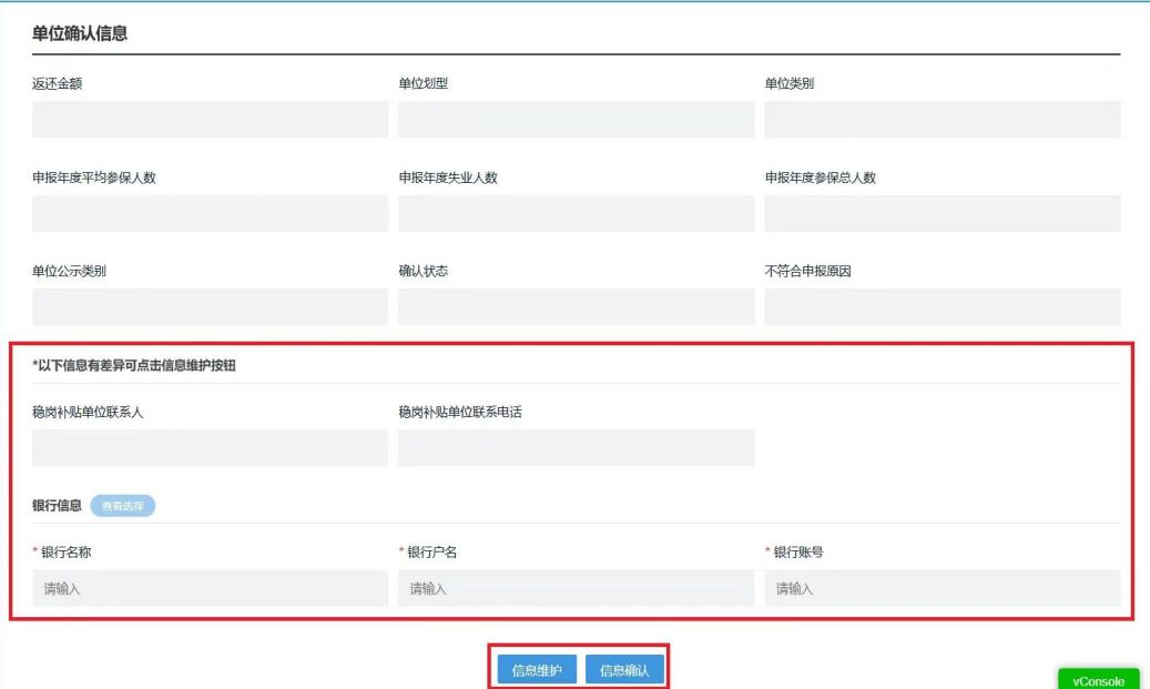 请仔细核对本单位划型、人数、返还资金、账户等信息,核对无误,点击“确认”即可。