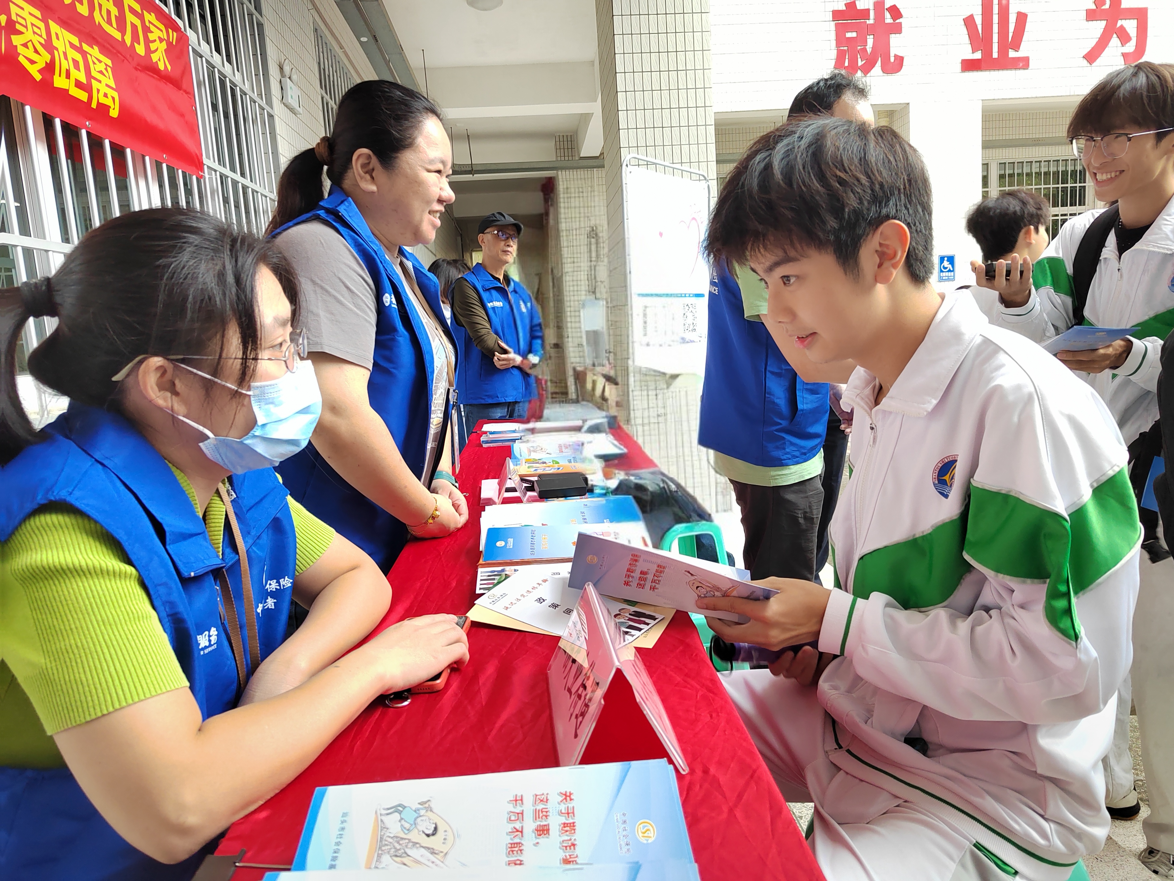 为加深学生对社保政策的了解,宣讲结束后,市社保局龙湖分局采用派发宣传单、有奖问答和赠送礼品等形式开展面对面政策咨询活动,现场气氛热烈,互动踊跃。社保志愿服务人员还向学生普及如何通过微信小程序“粤省事”、“电子社保卡”线上办理各项社保业务,宣传强化学生的反欺诈社保意识,将政策面对面宣讲,将服务零距离送达。“毕业后没参加工作也能缴纳养老保险”“企业不帮劳动者缴纳社保是违法行为”“原来还可以通过‘粤省事’线上查询社保参保情况,回家也帮爸妈查询一下”,同学们洋溢着笑容,热烈地讨论着。参加宣讲活动和现场咨询的学生共有1000多人。