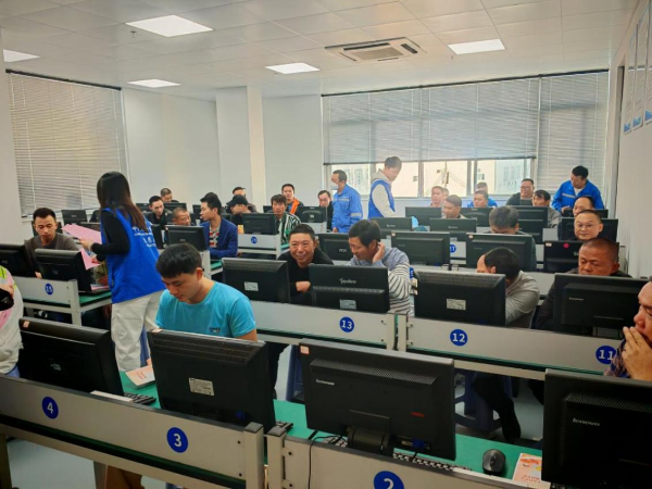 宣讲结束,适逢一批钳工、电工刚结束上岗资格培训课程,为扩大宣传覆盖面、提升高危职业人员的工伤保险参保意识,在校职工的引导下,志愿者们向在场参与培训的钳工、电工们分发社保宣传手册,带领他们一同研读政策,让参保意识更加深入人心。