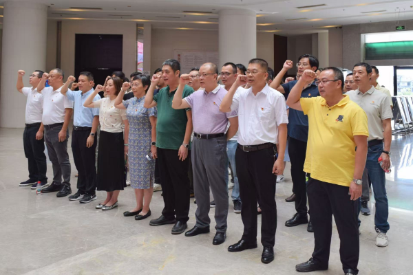 走进历史殿堂,感悟红色根脉。首站,党员干部们齐聚汕头市博物馆,在现场举行了庄重的重温入党誓词仪式。在青年党员代表的领誓下,全体党员干部整齐列队,面向鲜红党旗,高举右拳,庄严宣读入党誓词。铿锵有力的誓言在展厅内回荡,既是对入党初心的深情重温,更是对新时代新征程上社保人使命担当的坚定承诺。