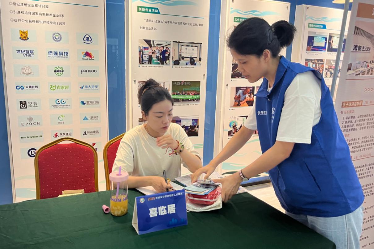 在华侨试验区中高端人才招聘会暨人才集市,社保青年志愿者通过“就业+社保”联动,现场为求职人才和企业提供专业、贴心的社保政策咨询服务,精准服务人才发展。
