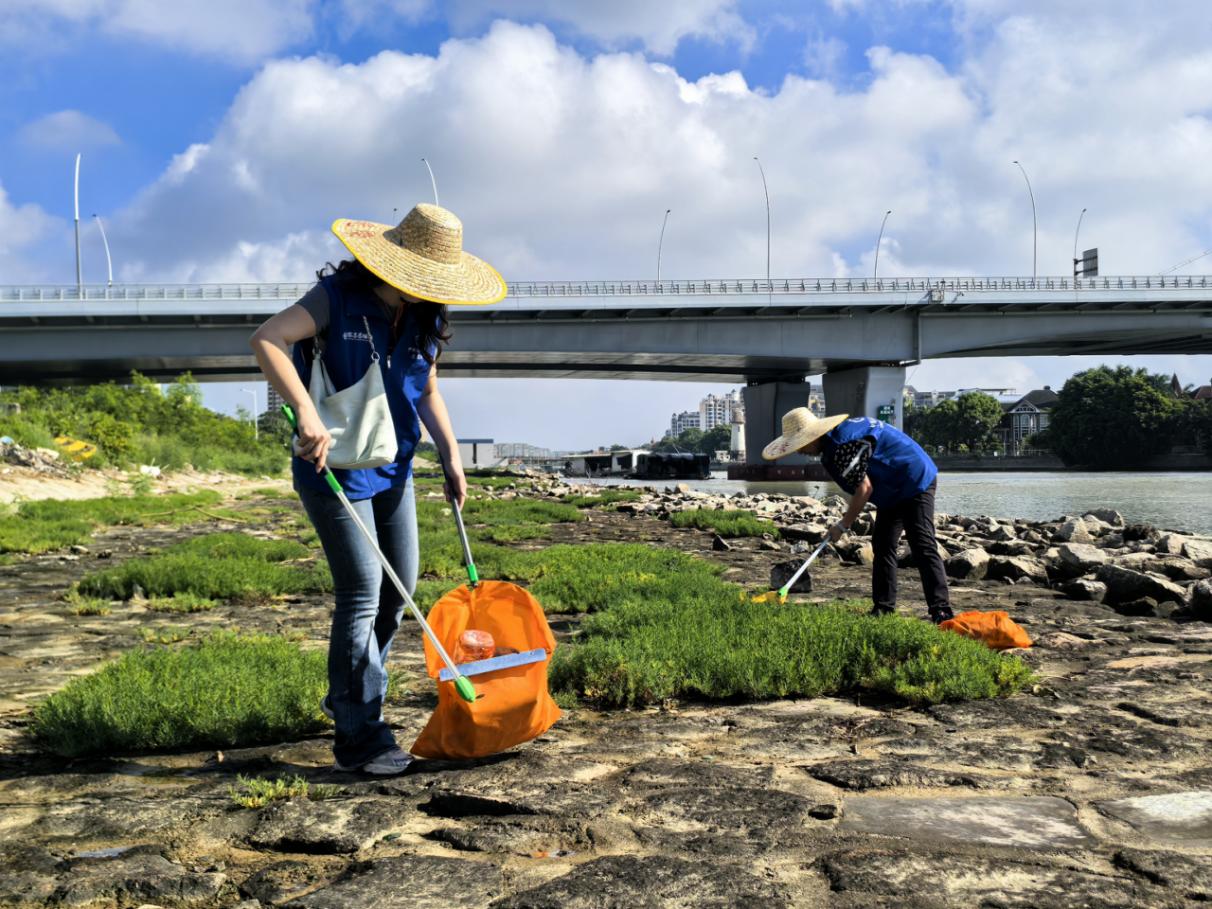 活动现场,志愿者们携带垃圾袋、夹子等清洁工具,沿着观光海堤展开拉网式净滩行动,对海堤上的包装袋、纸屑、泡沫盒等生活垃圾和海洋漂浮物进行“地毯式”清理。志愿者们分工协作,仔细搜寻草丛、墙脚等细微角落,弯腰捡拾散落在各处的废弃物,逐一收集、整理打包。经过志愿者们的努力,原本垃圾散落的观光海堤重新变得干净整洁,海岸卫生环境得到有效改善。