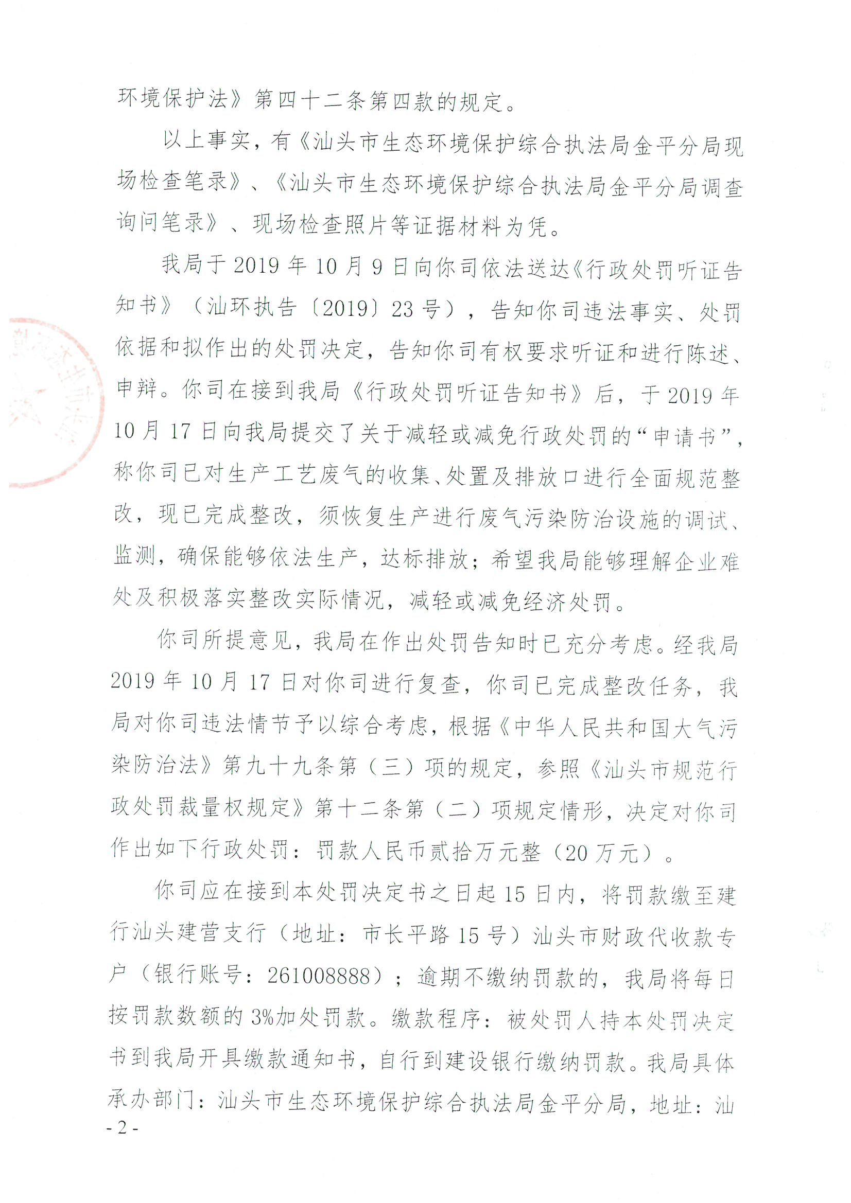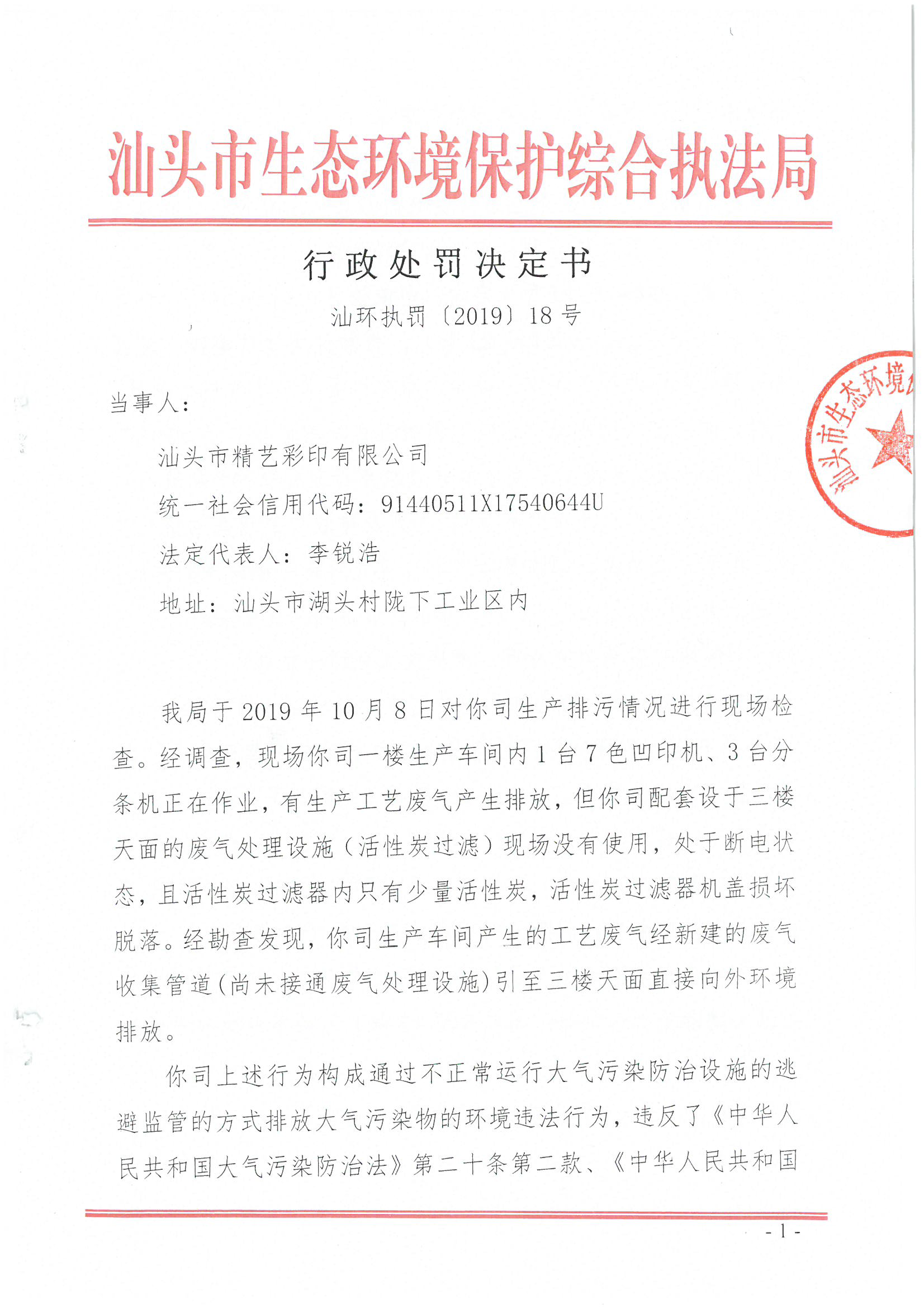 行政处罚决定书(汕头市精艺彩印有限公司)