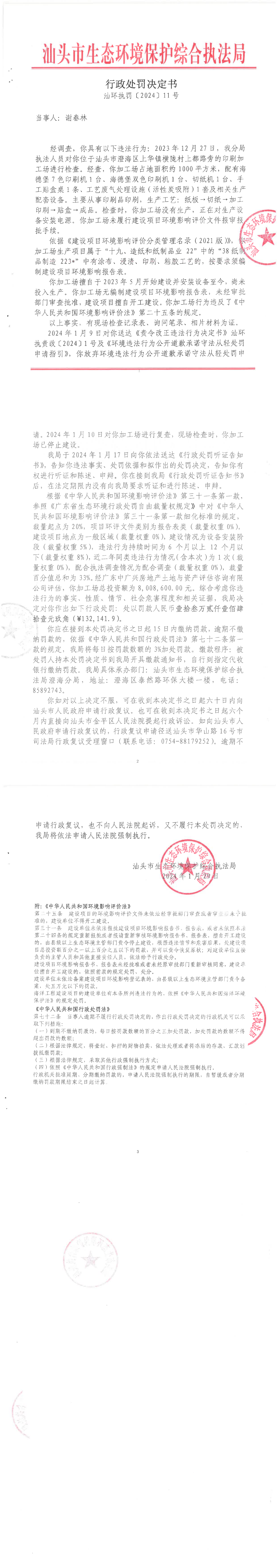 【澄海】行政处罚决定书(汕环执罚〔2024〕11号)