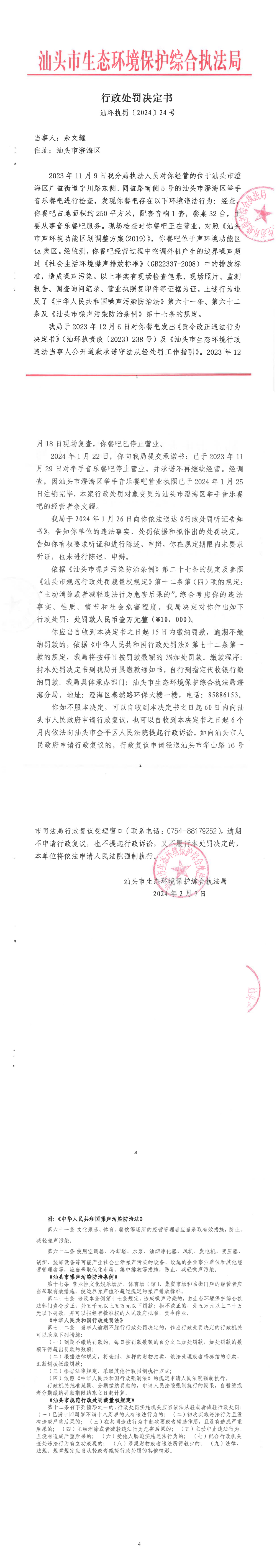 【澄海】行政处罚决定书(汕环执罚〔2024〕24号)