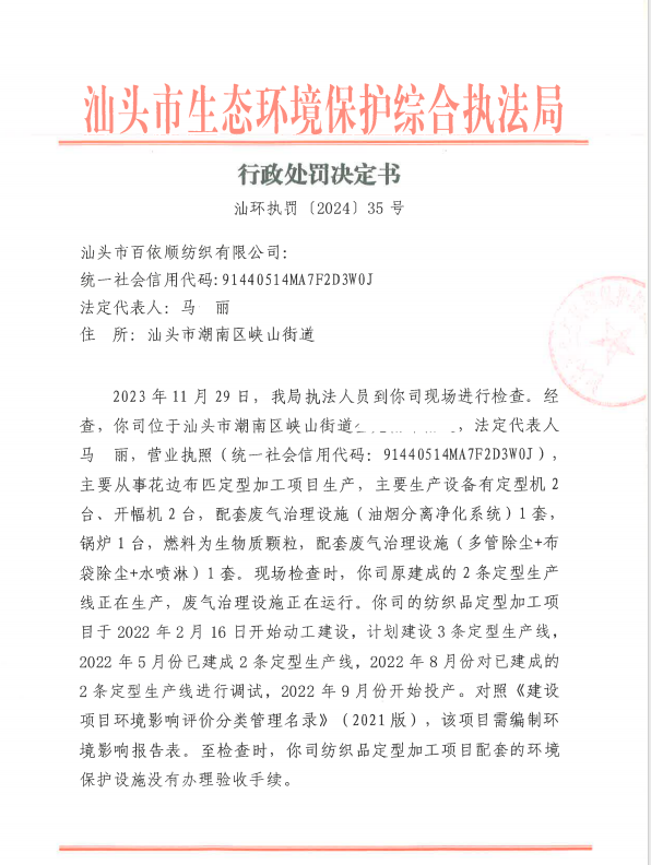 【潮南】行政处罚决定书(汕环执罚〔2024〕35号)