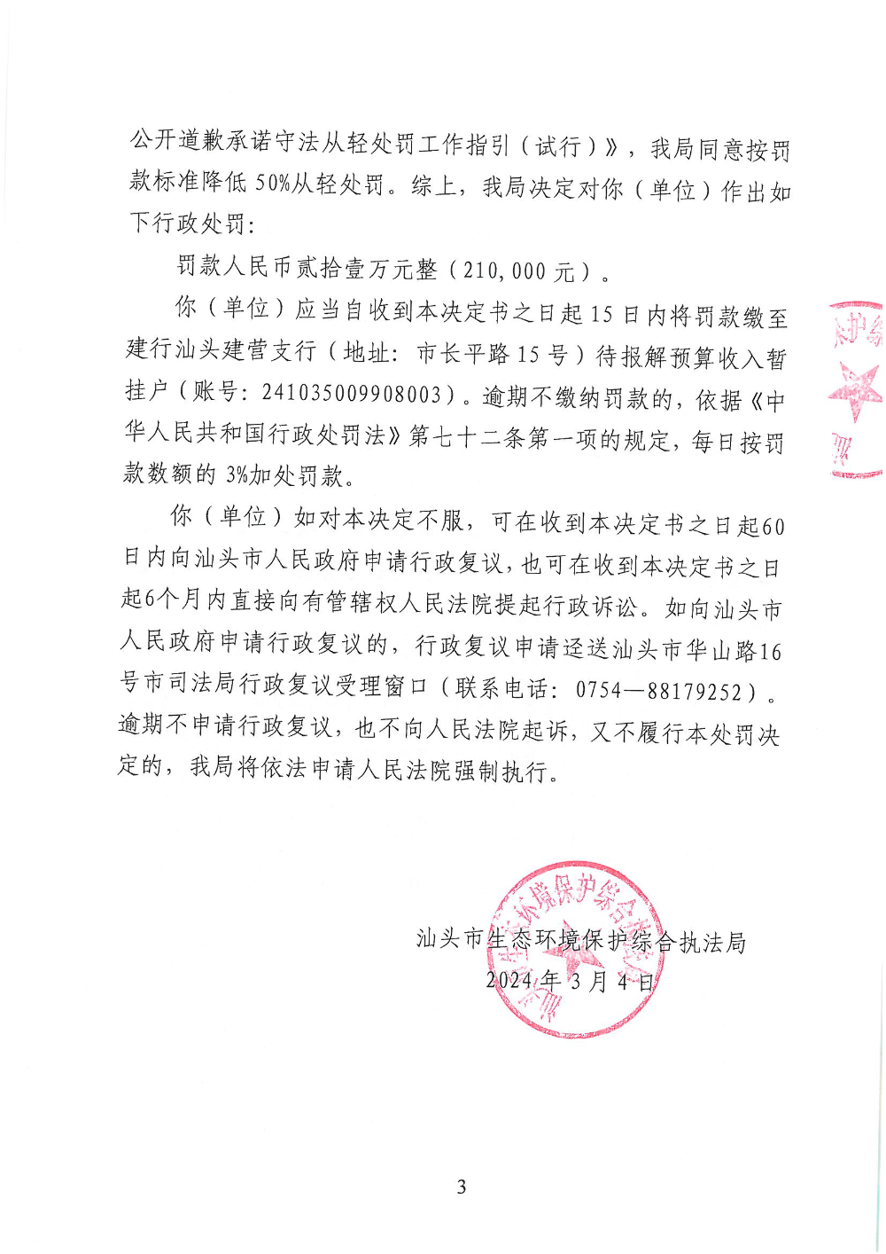 【龙湖】行政处罚决定书(汕环执罚〔2024〕39号)