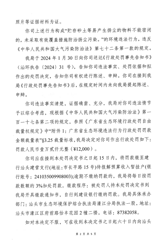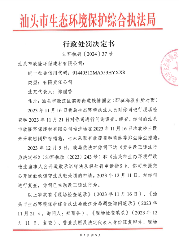 【濠江】行政处罚决定书(汕环执罚〔2024〕37号)