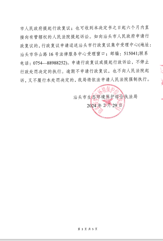【濠江】行政处罚决定书(汕环执罚〔2024〕36号)