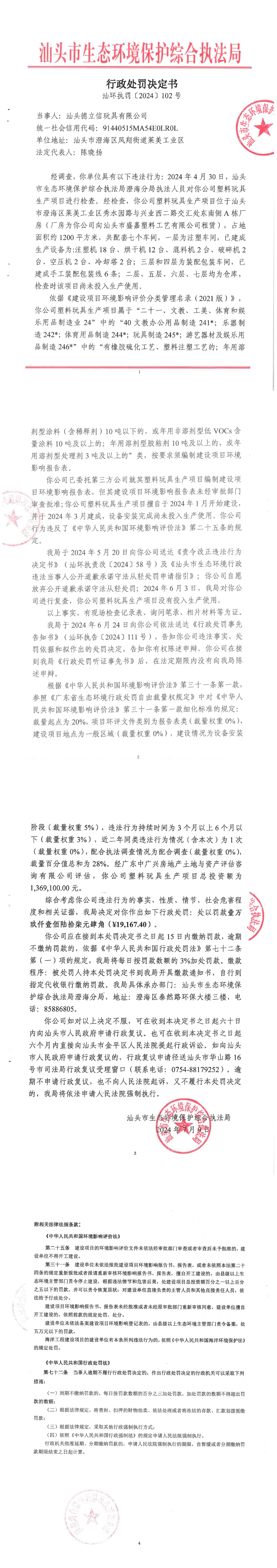 【澄海】行政处罚决定书(汕环执罚〔2024〕102号)