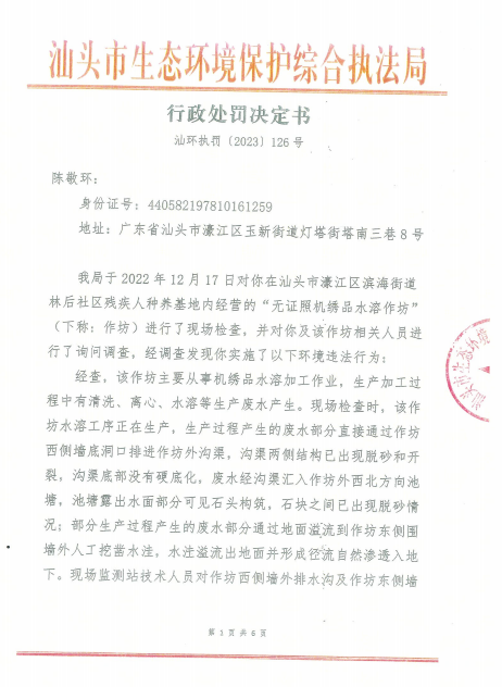 【濠江】行政处罚决定书(汕环执罚〔2023〕126号)