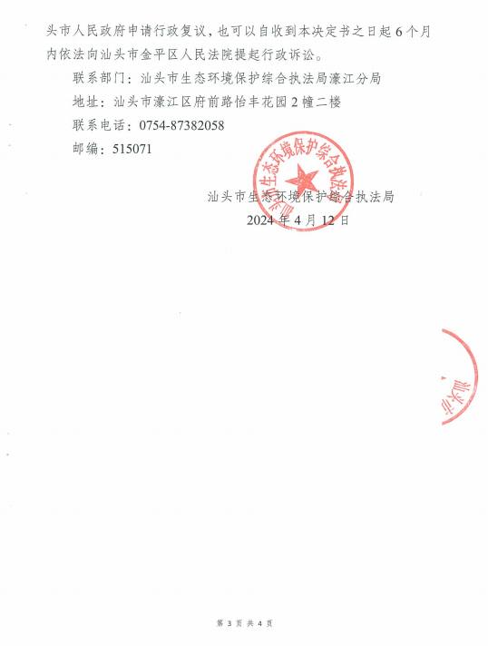 【濠江】不予行政处罚决定书(汕环执不罚〔2024〕6号)