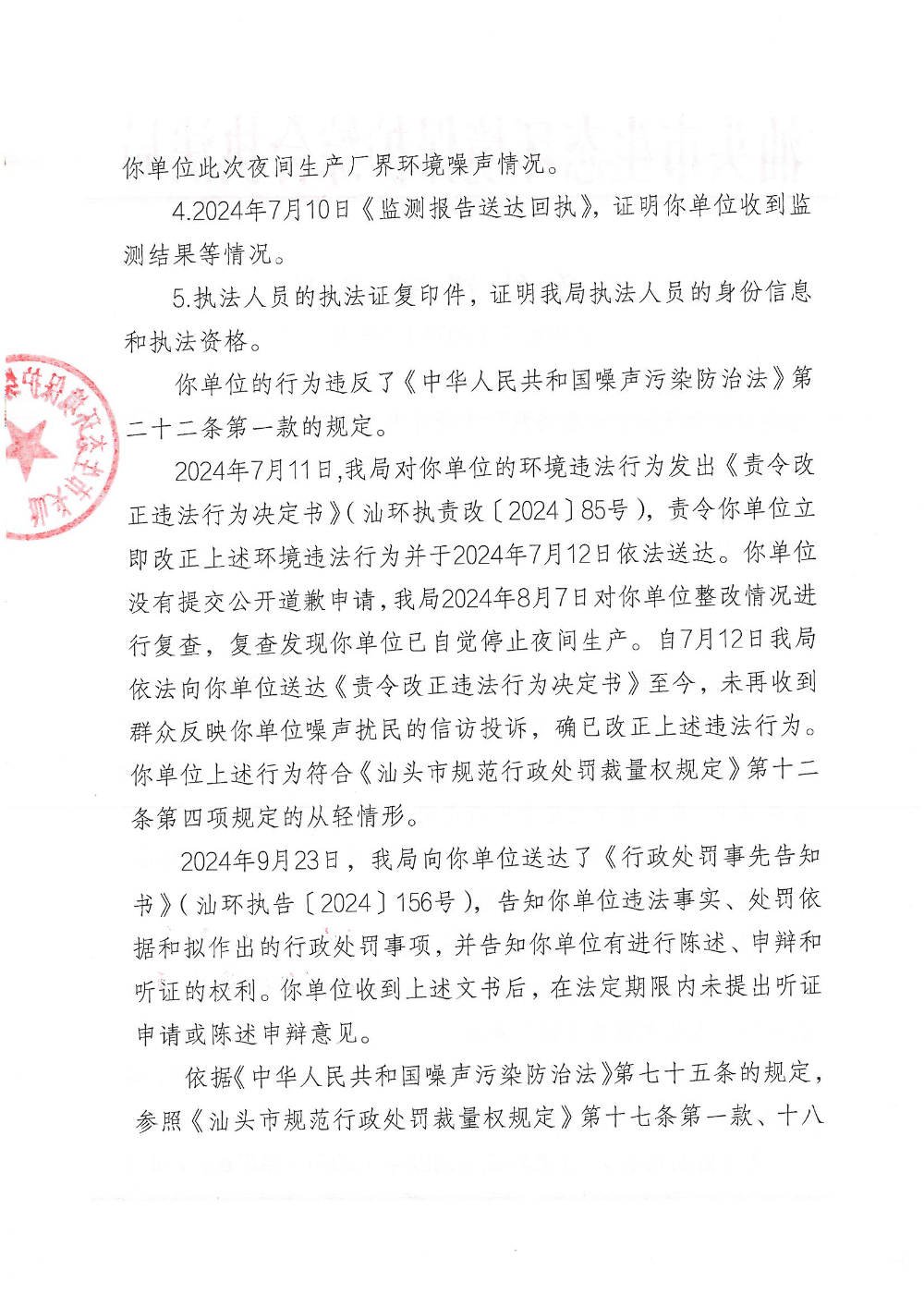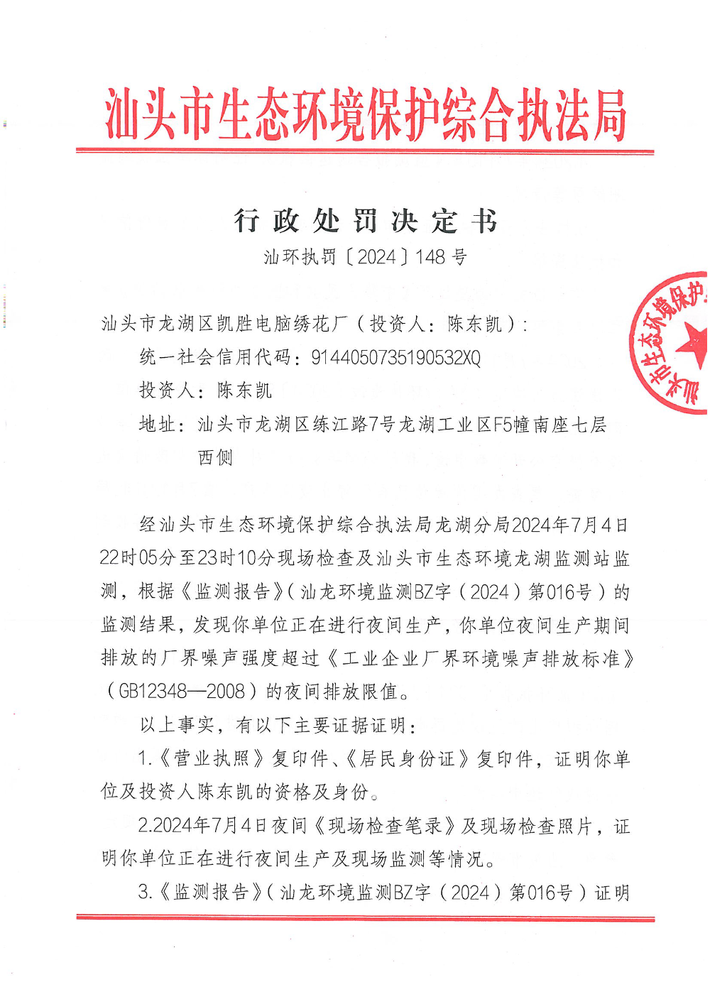 【龙湖】行政处罚决定书(汕环执罚〔2024〕148号)