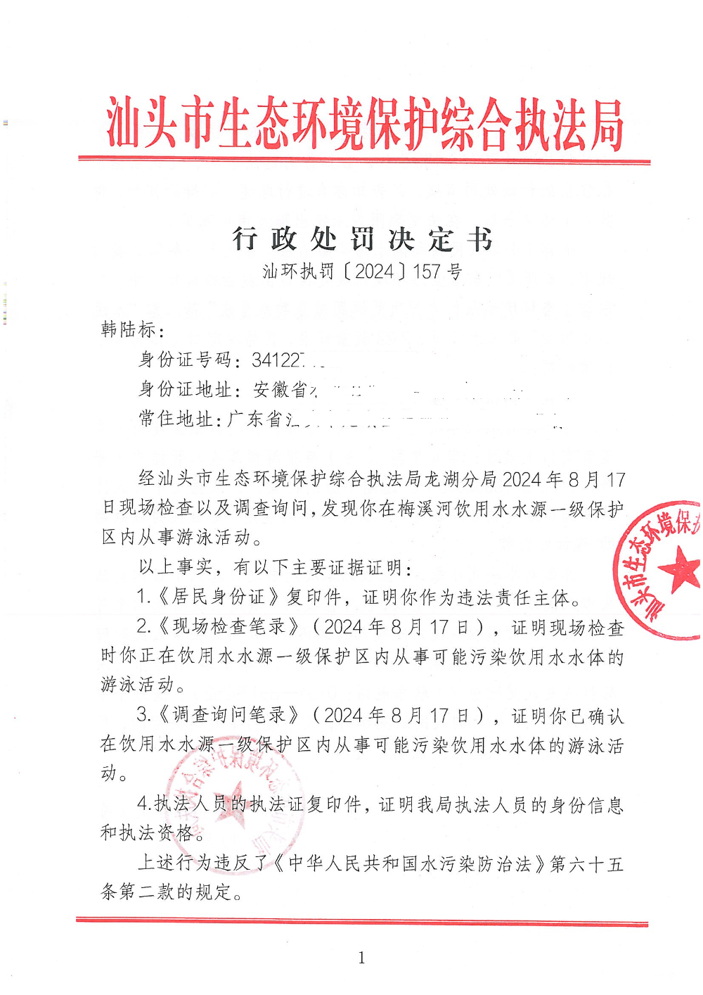 【龙湖】行政处罚决定书(汕环执罚〔2024〕157号)