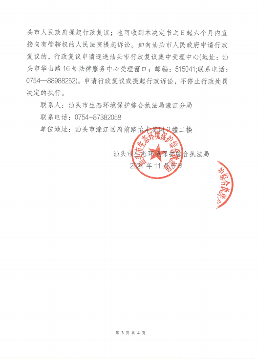 【濠江】不予行政处罚决定书(汕环执不罚〔2024〕14号)