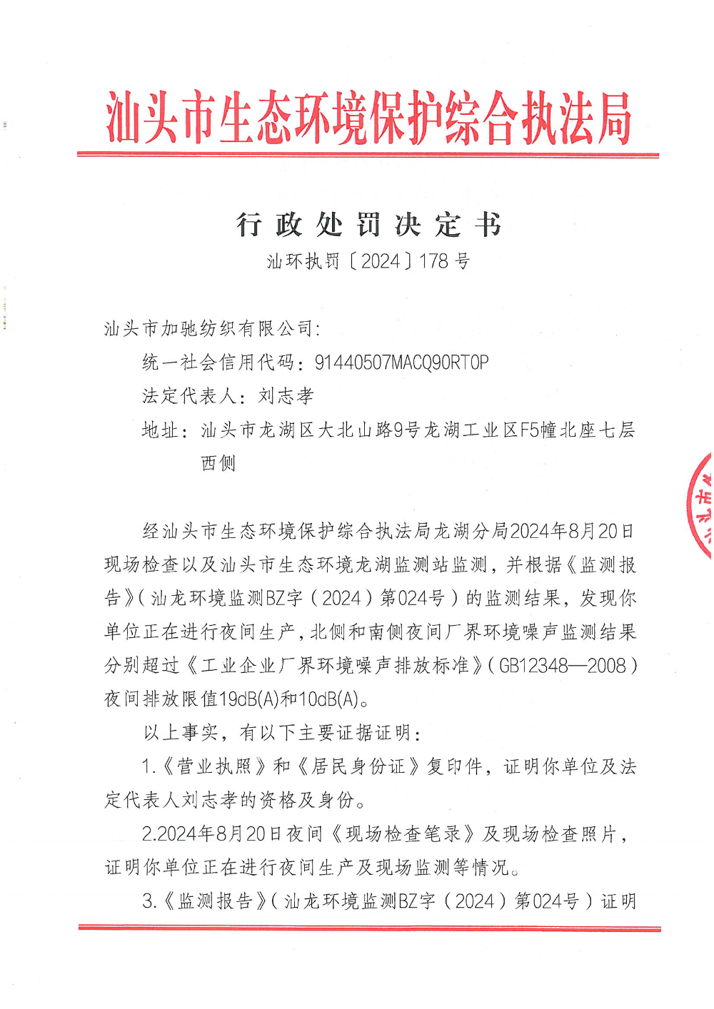【龙湖】行政处罚决定书(汕环执罚〔2024〕178号)