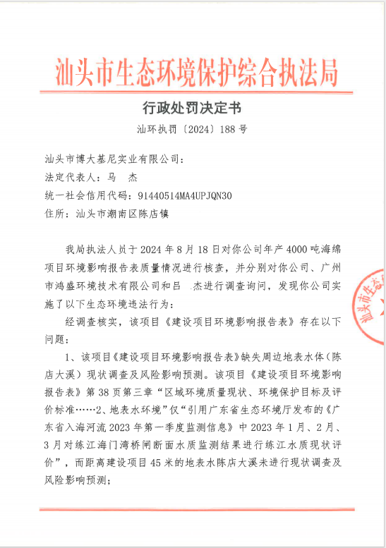 【潮南】行政处罚决定书(汕环执罚〔2024〕188号)